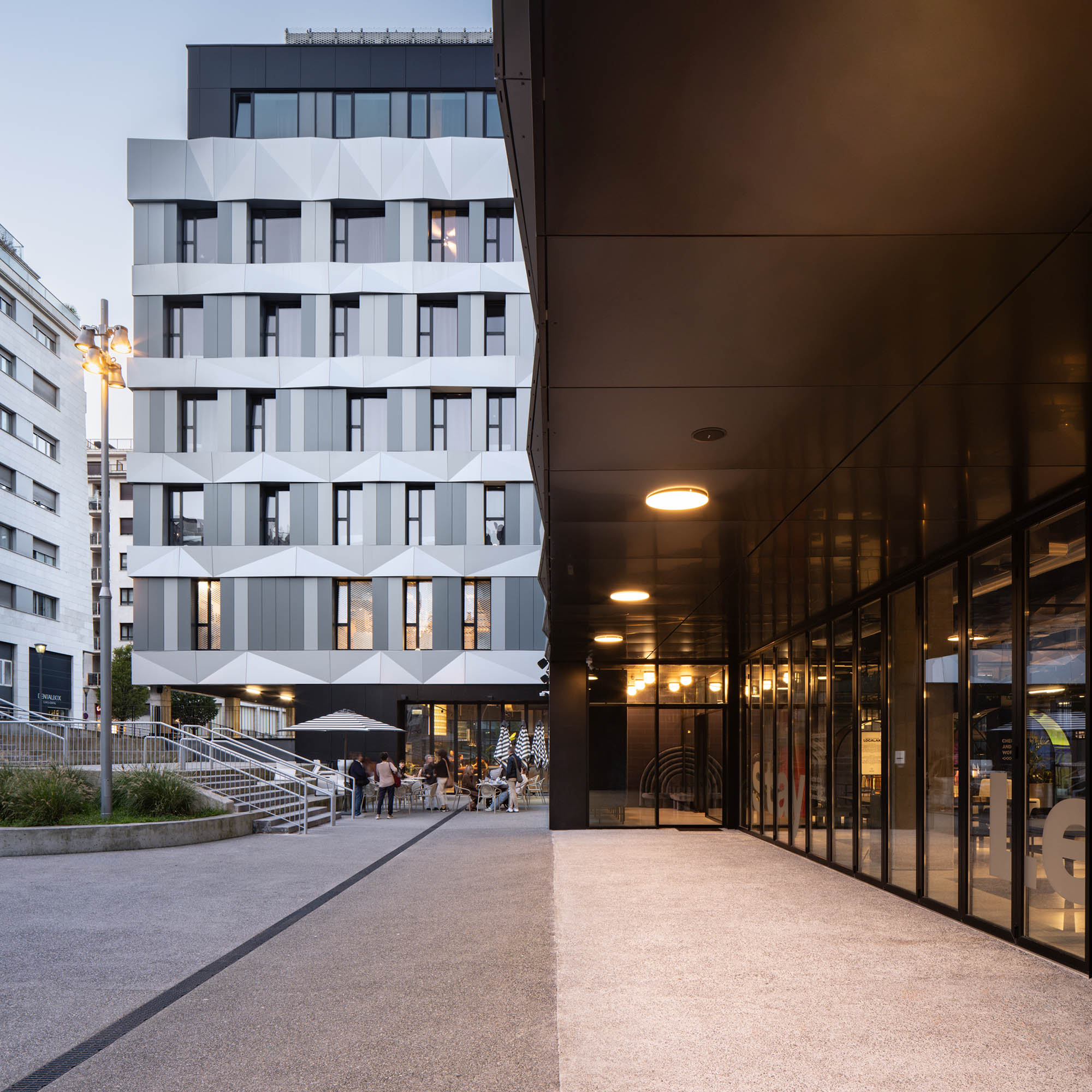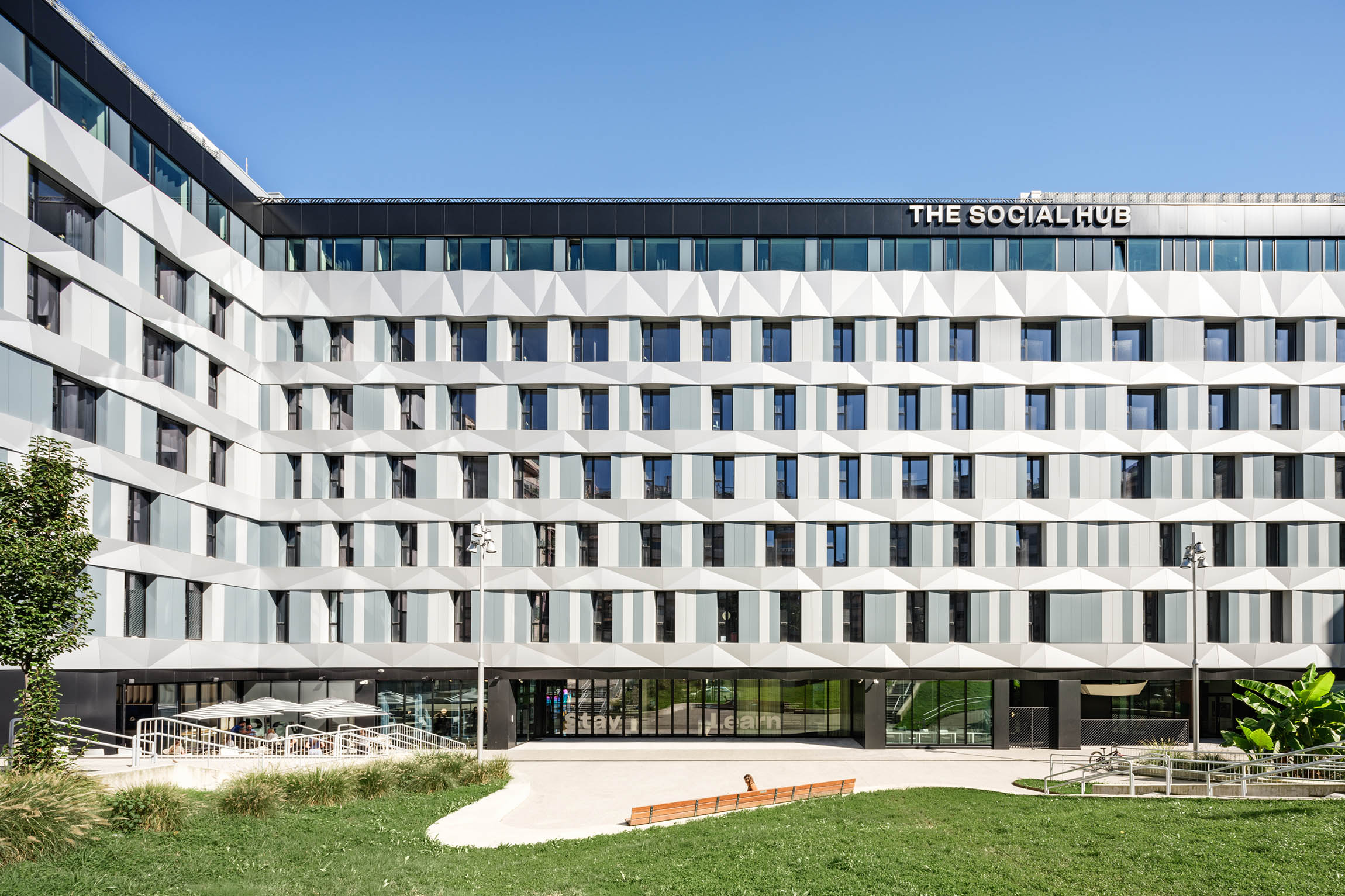 The Social Hub es un Hotel híbrido que destaca por su intención de convertirse en un punto de encuentro para toda la comunidad. Su principal instrumento para conseguirlo es una planta baja abierta y transparente, con espacios para estudiar, descansar, trabajar y divertirse. Esta vocación social se reafirma en un edificio que subraya la trasparencia de su planta baja a través de su composición volumétrica y que se integra en la ciudad con una fachada dinámica reflejo del movimiento de su entorno.